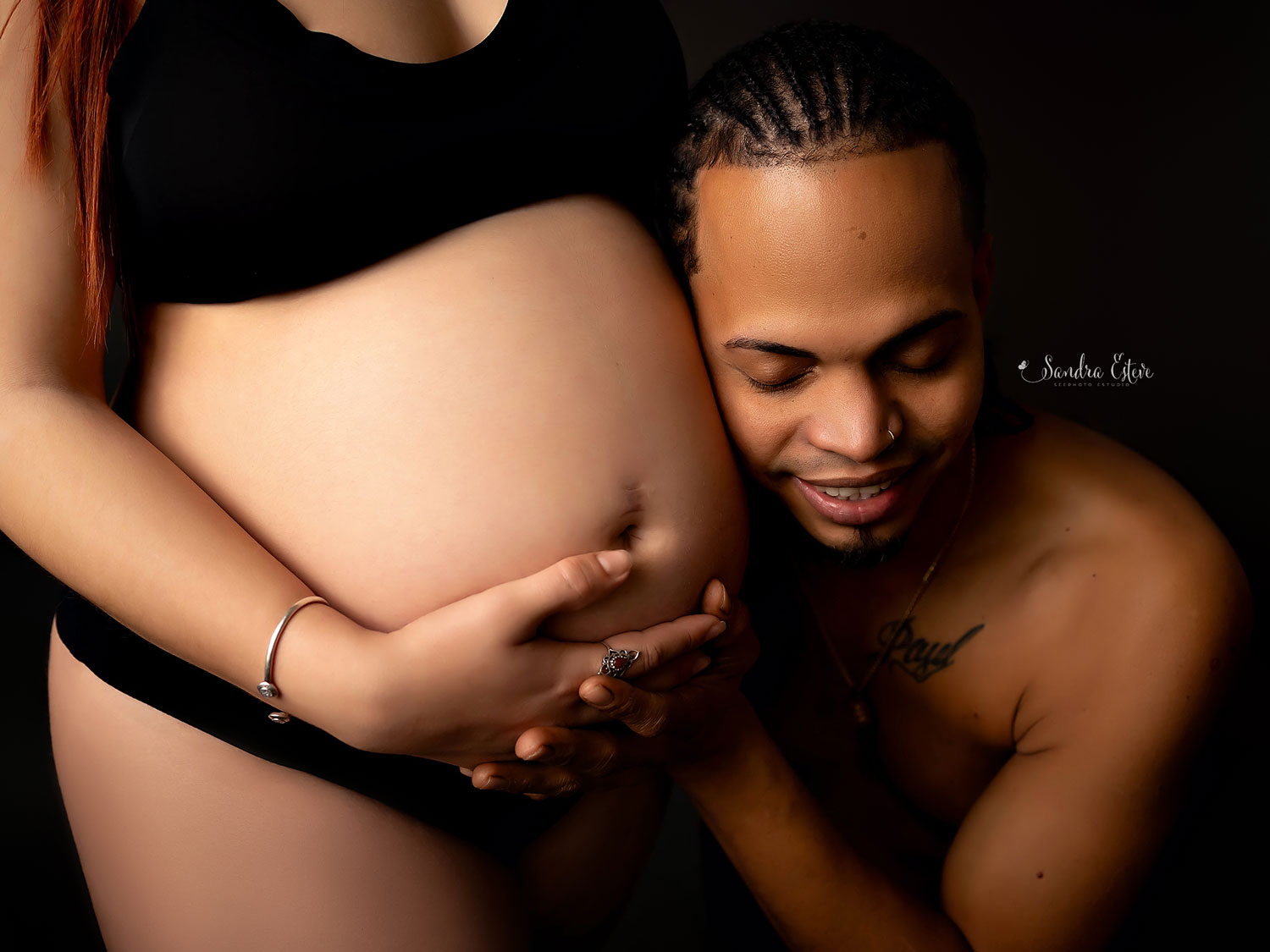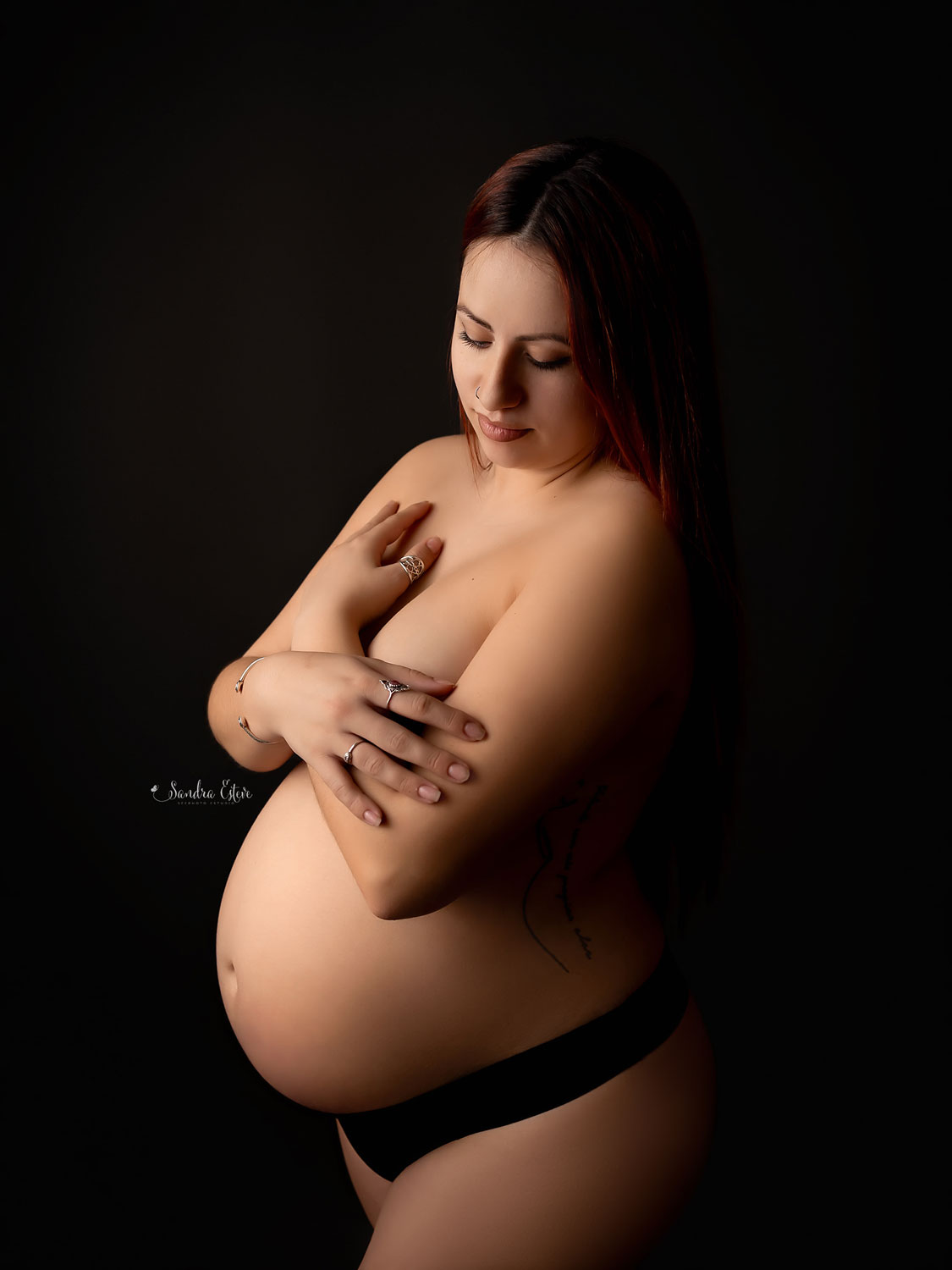 Me hace muy feliz cuando la gente decide venir al estudio desde lejos para realizar la sesión de fotos, y es que valoro mucho que valoren mi trabajo. Las sesiones de embarazo en el estudio que ofrezco, son delicadas, son muy cuidadas y mimadas. Hay dos partes en la sesión, la parte boho y la parte más artística y posado en fondo oscuro. En este caso querían la parte más de posado en fondo negro.